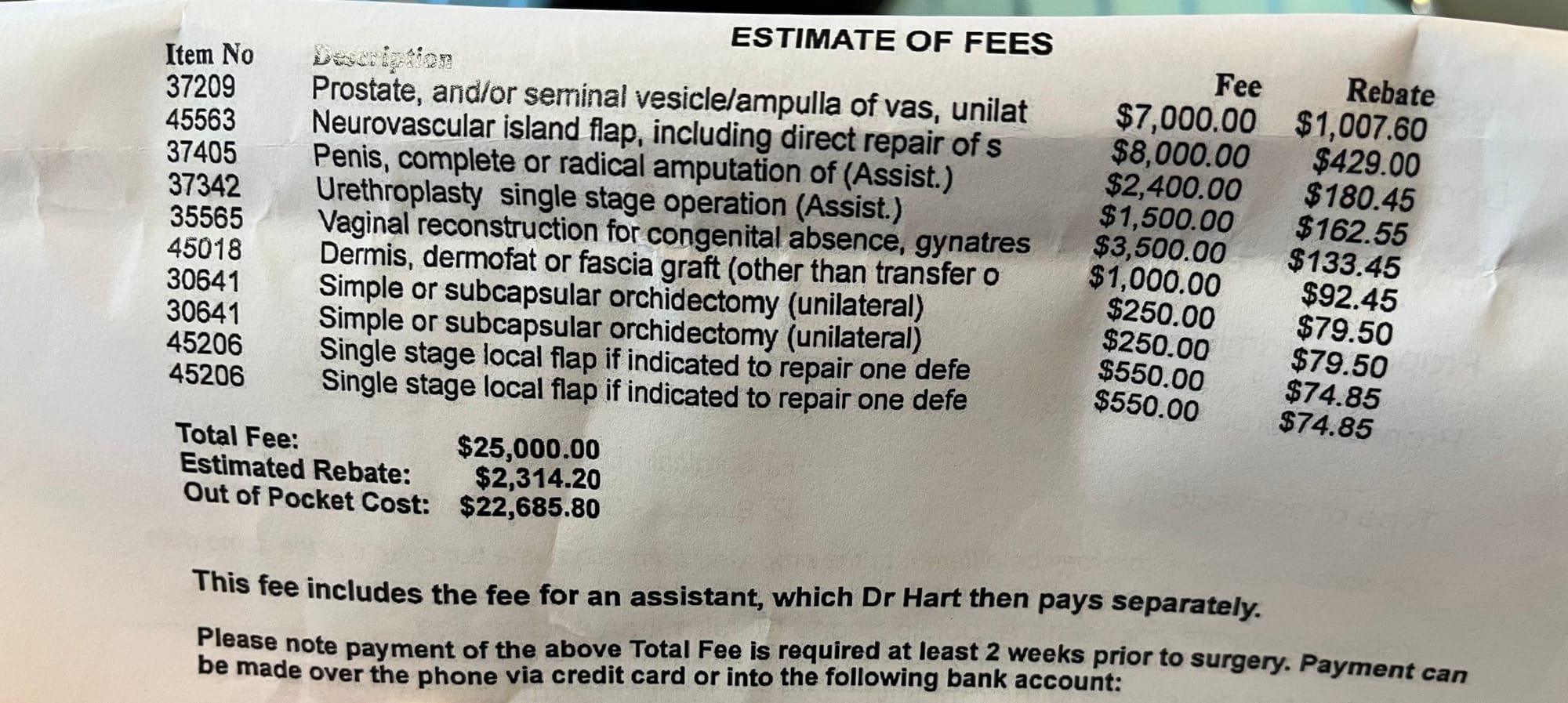 Medicare doesn’t cover anything but the basic anti-androgens and hormone replacement therapy. It doesn’t cover bottom surgery in either persuasion. Top surgery and facial feminisation surgery are both treated as cosmetic surgery, and skin treatments to remove hair are also considered private costs. There is also more gatekeeping for trans people to access surgeries that cis people can simply agree with via informed consent, it is standard practice to get both a psychologist and a psychiatrist to sign off on any surgery. It costs a lot more to perform cisheteronormativity, it costs a lot more to be trans than to be cis.